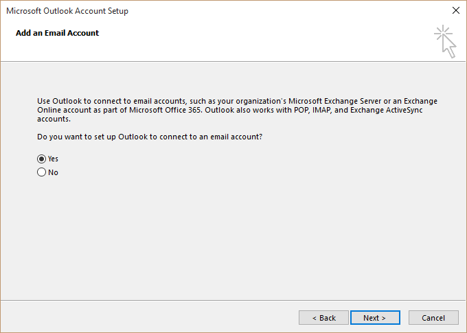 2. El asistente le preguntará si ¿Desea configurar una nueva cuenta de correo electrónico?, seleccione "Si" y pulse Siguiente