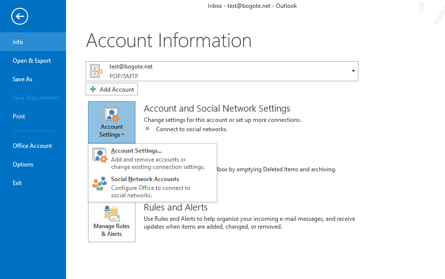 Si necesita acceder posteriormente a cambiar la configuración de la cuenta puede hacerlo de la siguiente manera: