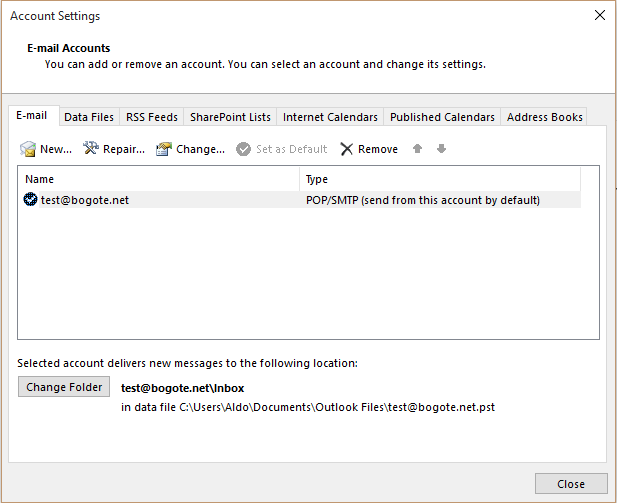 Tipo de Cuenta: POP3