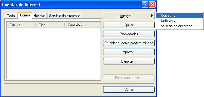 2. Dentro de Cuentas seleccione "Agregar"; "Correo"