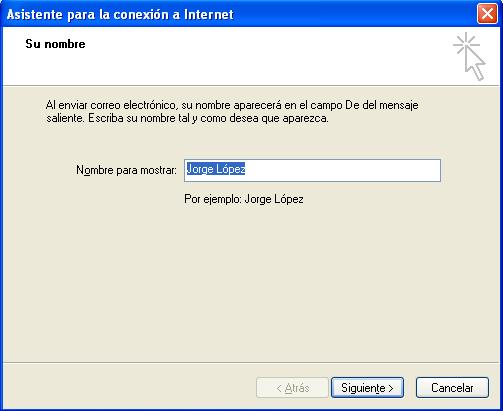 3. Se iniciará un asistente que guiará paso a paso la configuración del correo. En primer lugar ingrese el nombre para mostrar.