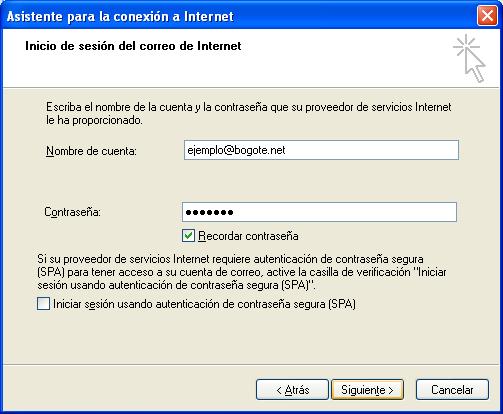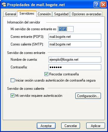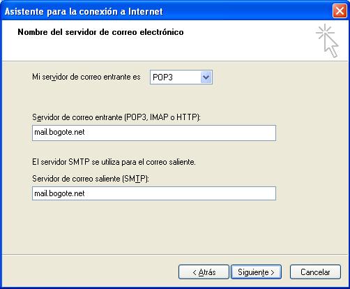 5. A continuación ingrese los servidores de correo. Por ejemplo, si su dominio es bogote.net, su servidor de correo entrante y saliente será mail.bogote.net